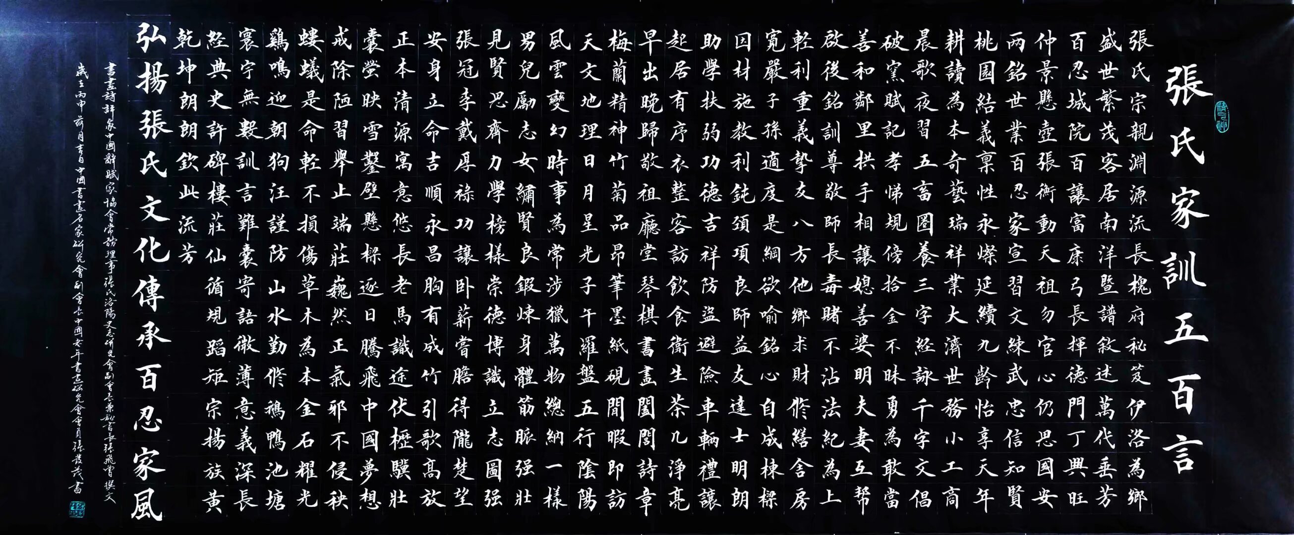 炎黄巍巍,无规不成国格;族脉悠悠,无训不成家风。贤达济济,无背先祖之教而得道;雄才列列,皆循高堂之言而成名。恪守教化,德塑人伦;谨聆警诫,学砺精英。但立直标,终无曲影也;长执正气,自有誉声焉。华夏张氏,千秋望族也,代有雅士贤达出焉。今有张公飞曾者,慎叩家世,精研训导,承前启后,以成《张氏家训五百言》。其怀也高远,其思也辽宏;其言也典雅,其意也精诚。不失当今家训之名篇也。